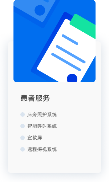 通過床旁交互終端,一屏打通住院場景,為住院患者提供全方 位住院信息服務(wù),打造住院服務(wù)中心,讓信息服務(wù)無處不在,構(gòu)建有溫度的住院病房。